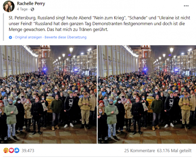 Die Teilnehmerzahl mag beeindruckend sein, aber es ist natürlich illusorisch anzunehmen, dass das irgendetwas an dem Krieg ändert. Putin interessiert sich ungefähr 0,0 für derartige Demonstrationen. Der wird sein Programm bis zum Ende durchziehen, wenn man ihn nicht stoppt. Ich habe das vorher auch anders eingeschätzt.